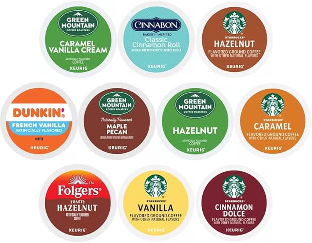 30 Count – Flavored K-cups Coffee Pods Variety Sampler Includes Starbucks Hazelnut, Caramel, Cinnamon Dolce & Vanilla – Green Mountain Caramel Vanilla Cream, Maple Pecan & Hazelnut – Folgers Hazelnut – Dunkin French Vanilla -Cinnabon Cinnamon Roll for Keurig Brewers.