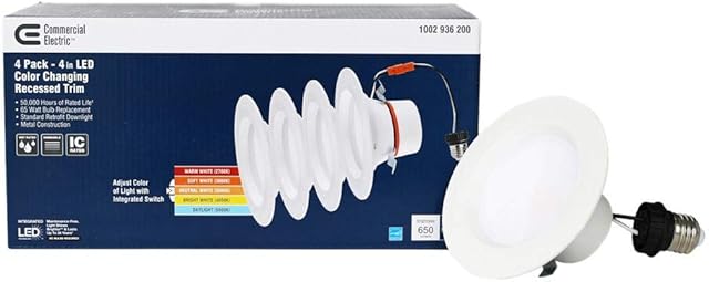This excellent (4 – Pack) Commercial Electric 4 in. Color temperature Integrated LED Recessed Trim is available for buying in our store. You can get the best deal on (4 – Pack) Commercial Electric 4 in. Color temperature Integrated LED Recessed Trim in our store today. Our store often has the best online prices. Check the (4 – Pack) Commercial Electric 4 in. Color temperature Integrated LED Recessed Trim in our store today.