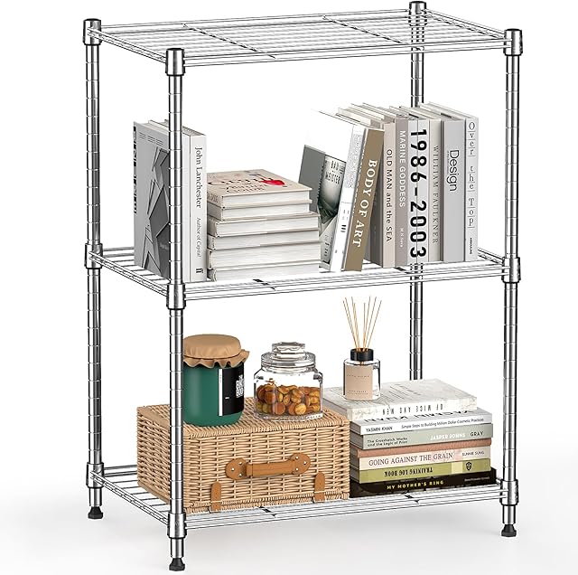 450 lbs Wire Storage Shelving 3-Tier Utility Shelving Unit Steel Organizer Wire Rack for Home,Kitchen,Office,Chrome(11.8″ D x 17.7″ W x 26.4″ H)