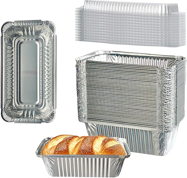 50 Pack 6.9″x3.5″ Disposable Aluminum Loaf Pans with Lids – 1Lb Mini Baking Pans,foil pans, ldeal for Baking Bread, Cakes, Cinnamon Rolls & Storing Refrigerated Food
