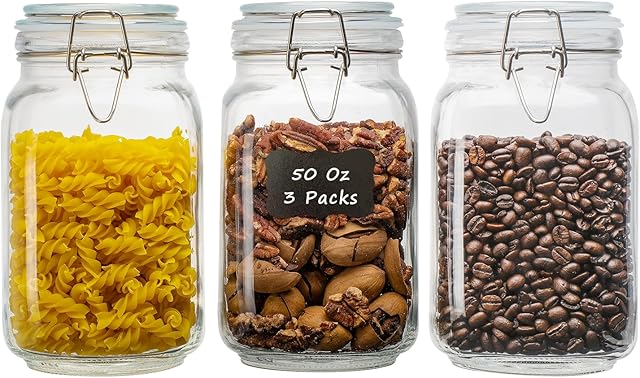 This excellent 50oz Square Glass Food Storage Jars with Airtight Clamp Lids, 3 Pack Large Kitchen Canisters for Flour, Cereal, Coffee, Pasta and Canning, Mason Jar (Clear 50oz Square – 3 sets) is available for buying in our store. You can get the best deal on 50oz Square Glass Food Storage Jars with Airtight Clamp Lids, 3 Pack Large Kitchen Canisters for Flour, Cereal, Coffee, Pasta and Canning, Mason Jar (Clear 50oz Square – 3 sets) in our store today. Our store often has the best online prices. Check the 50oz Square Glass Food Storage Jars with Airtight Clamp Lids, 3 Pack Large Kitchen Canisters for Flour, Cereal, Coffee, Pasta and Canning, Mason Jar (Clear 50oz Square – 3 sets) in our store today.