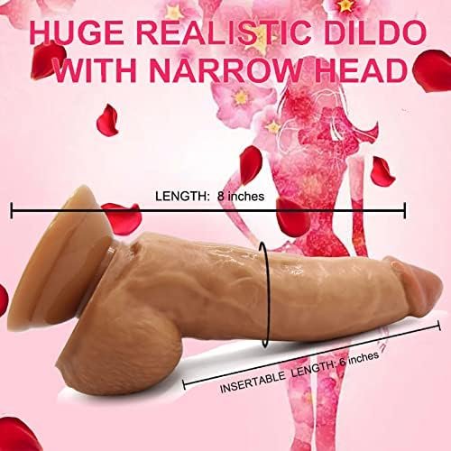 8 Inch Silicone Realistic Big Dildo Adult Sex Toy For Women,Liquid Silicone Safe & Soft G Spot Stimulation With Strong Suction Cup For Female Masturbator Pleasure (L)