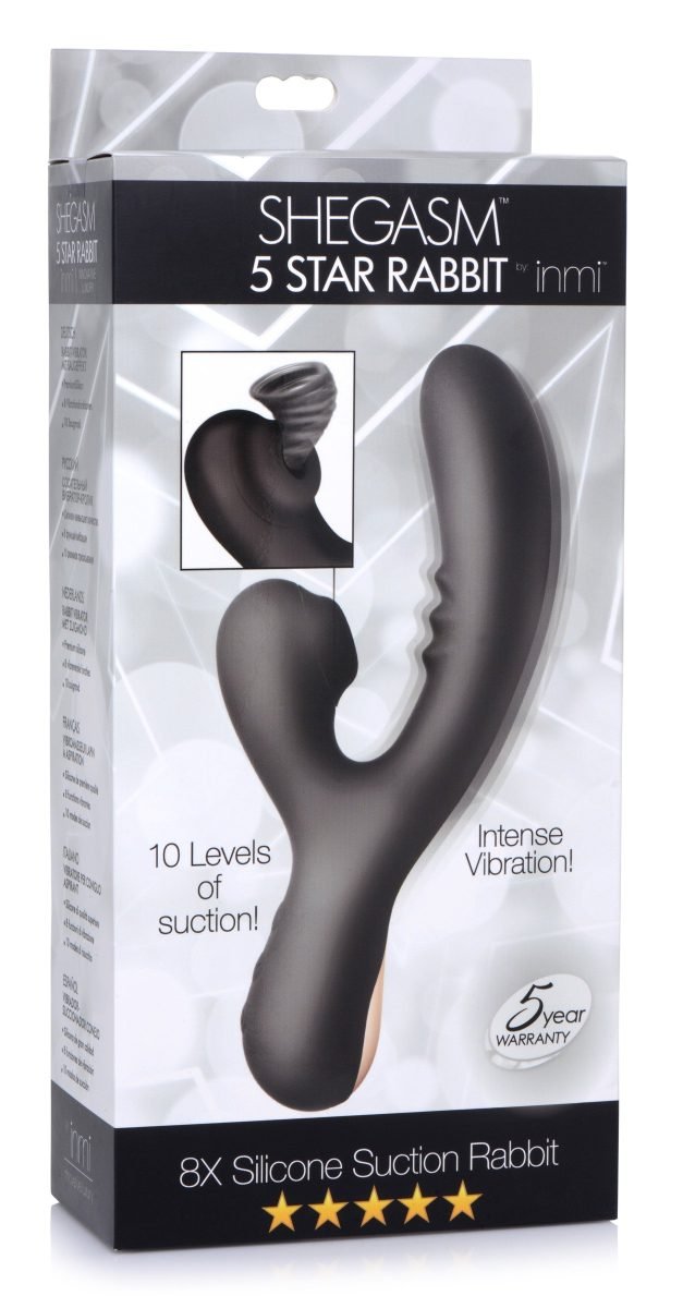 It?s like a blow job for the clit! Treat yourself to some 5 Star Treatment with this powerful clitoral sucking rabbit vibe! Enjoy powerful vibes and satisfying suction in tandem with this dynamic silicone dream – the dramatic curve of the vibrating shaft hits your deepest sweet spot with ease, while the textured g-spot area and cliroal sucking stem make it easy to achieve the blended orgasm you crave!
