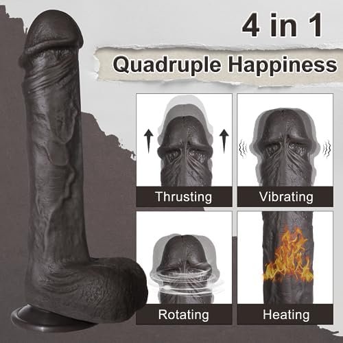 【Thrusting & Rotating & Heating – Realistic Dildos Vibrator】- This Black Dildo Reproduce Every Detail Of A Real Penis, Including A Vivid Dildo Glans, Lifelike Penis Veins, And Plump Wrinkled Balls. It Seems To Feel Realistic Sex Toy, Thrusting And Rotating When Touching, And This Adult Toys Has Wonderful Stimulation To Women’S Vaginal G-Spot. In Addition, This Sex Toy Also Has Telescopic, Rotating And Heating Functions, And The Gentle Heating Function Can Bring A Real Skin Temperature Experience,【A Variety Of Powerful Modes For You Choose】- This Heating Dildo Has 10 Thrusting And 10 Rotating Modes, The Level Of Stimulation Is From Weak To Strong, And The Pleasure Is Gradually Multiplied, So That You Can Get Into The State Faster. You Are Free To Choose Your Favorite Mode And Experience A Wonderful Dual Stimulation. Whether For Personal Use Or For Sharing With Women And A Partner, This Multi-Mode Realistic Heated Sex Tools Will Satisfy Your Desire For Stimulation And Sexual Pleasure!,【Strong Suction Cup & Remote Control】- This Thick Dildo Has A Powerful Suction Cup, You Can Enjoy It On Your Desk, Toilet, Kitchen Or Anywhere Else, It Is Best Toy For Adult Women. Meanwhile, The Remote Control Of This Dildo Contains 3 Buttons, One Button Is For Controlling The Vibration, Thrust And Rotation, One Button Is For Controlling The Pause, And The Other Button Is For Controlling The Heat. Bringing You More Pleasure , The Adult Toy Is A Real Happiness For Enjoyer.,【Friendly-Skin Silicone & Ipx6 Waterproof】- This Thrusting Vibrator Is Made Of Safe Liquid Silicone With Smooth, Non-Toxic And Odorless Propertie, It Feels Soft And Comfortable To Touch, And This Women Sex Toys Will Feel Like Touching A Real Dildo. With Ipx6 Waterproof Design, This Retractable Dildo Can Meet Your Needs Whether You Are Bathing Or Other Ways Of Play, And This Female Sex Toys Is Easy To Clean, Also For Adult Sex Toys & Games, It Design For Sex Toys For Woman.,【Perfect Size & Charging】- This Suction Vibrator Has A Total Length Of 8.6 Inches, An Insertion Depth Of 6.6 Inches And Diameter Of 1.6 Inches And Up To 9 Inches In Length When Using The Retractable Function. The Lifelike Glans, Veins, Testicles And The Size Is Designed To Fit The Human Vagina Will Bring Strong Visual Shock. In Addition, With Usb Magnetic Charging, This Women Sex Toy Can Last Up To 70 Minutes On A Full Charge And Comes With The Original Charging Cable.,【Discreet Packaging & Reliable Service】- This Big Dildo Is Shipped In Discreet, Private Packaging, No Need To Worry About The Contents Of The Package Being Known, Absolute Privacy Guaranteed. If You Encounter Any Problems When Using This Dildo, Please Contact Us In Time, We Will Solve The Problem For You Within 24 Hours.