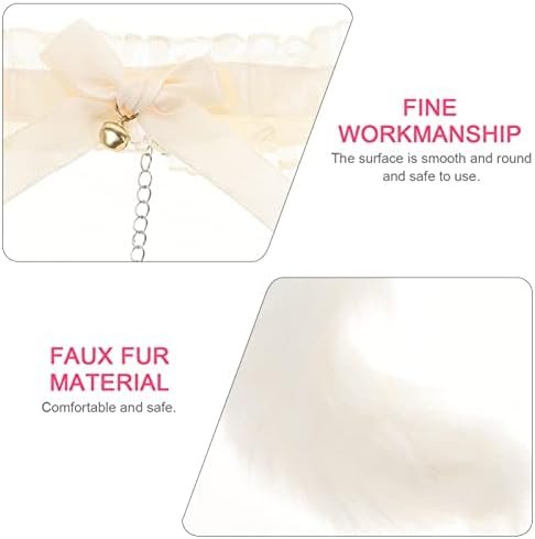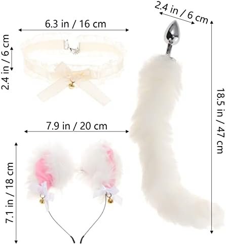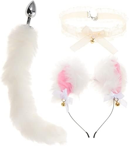 Abaodam Fox Animal Costume Set Furry Ears Headband Tail Plug And Neck Choker For Women Valentines Day Cosplay Game Fancy Dress White
