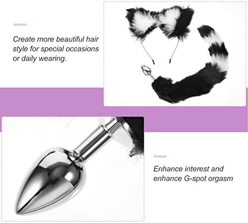 Abaodam Fox Ears And Tail Cosplay Animal Costume Set Fur Hair Clip Headdress Tail Womens Costume For Halloween Cosplay Black White