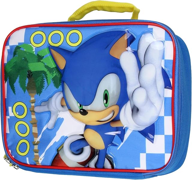 AI ACCESSORY INNOVATIONS Sonic The Hedgehog Kids Lunch Box Full Gamer Raised Character Insulated Lunch Bag Tote For Hot And Cold Food, Drinks, And Snacks