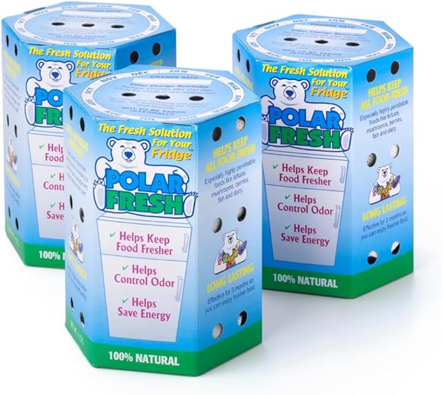 All-in-1 Refrigerator Deodorizer & Produce Saver by Polar Fresh 3 Pack – Fridge Odor Eliminator, Ethylene Gas Absorber, Fridge Moisture Absorber & Efficiency Booster; Surpasses Baking Soda & Charcoal