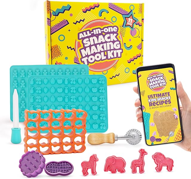All-in-One Snack Making Kit – 11-Piece DIY Set for Goldfish Cracker Cutter, Animal Cookies, Gummies & More – Includes Cookie Cutters, Silicone Gummy Molds & Dropper – Fun & Easy for Kids & Families