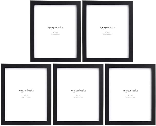 Amazon Basics Rectangular Photo Picture Frame, 8″ x 10″, Pack of 5, 11.22 x 9.21 inches, Black
