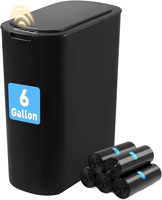 Automatic Bathroom Garbage Bin with Lid, 6 Gallon Touchless Trash Bin, Smart Electric Narrow Waterproof Trash Can for Toilet, Office, Kitchen, Bedroom, Living Room
