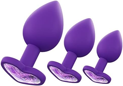 Bed Geek Set Of 3 Diamond Jewelled Butt Plugs For Anal Training (Purple) – Soft Silicone Butt Plug Starter Kit With Flared Base – Adult Fetish Toys With Velvet Gift Bag For Couples And Solo Play