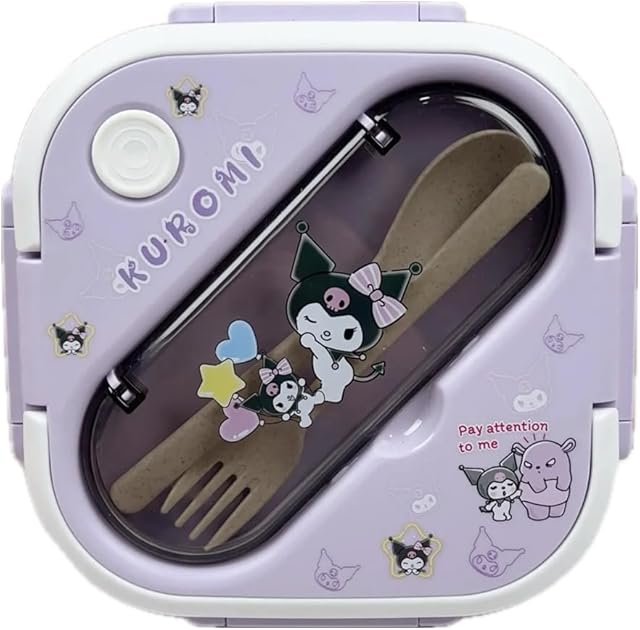 Bento Lunch Box Container Set with 3 Compartments Portable Personal Sealed Plastic Utensils Food Container Cute Kawaii Anime Kitty Bunny Dog (Purpleromi)