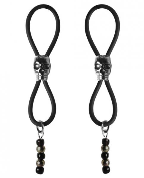 Bijoux de Nip Nipple Halos with Black Skull Slider from PHS International. Color Black, Silver. Made using body safe, phthalate free, latex free materials Silicone nipple loop. Adjustable by sliding the skull bead up or down.