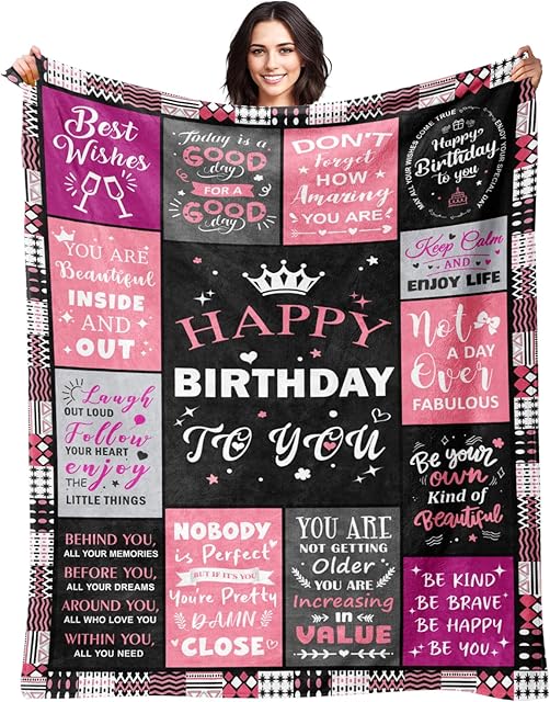 Birthday Gifts for Women – Happy Birthday Decorations Blanket – Gifts for Women Birthday Unique – Womens Birthday Gift Ideas for Her Wife Daughter Mom Sister Friendship – Soft Throw Blanket 50″x60″
