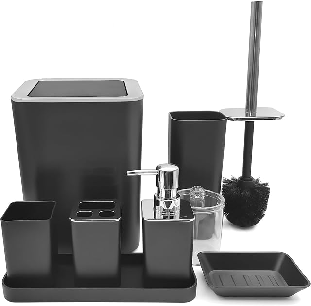 This excellent Black Bathroom Accessories Set,8-Piece with Trash Can,Soap Dispenser,Toothbrush Holder,Toothbrush Cup,Vanity Tray,Soap Dish,Toilet Brush and Clear Clear Plastic Qtip Holder is available for buying in our store. You can get the best deal on Black Bathroom Accessories Set,8-Piece with Trash Can,Soap Dispenser,Toothbrush Holder,Toothbrush Cup,Vanity Tray,Soap Dish,Toilet Brush and Clear Clear Plastic Qtip Holder in our store today. Our store often has the best online prices. Check the Black Bathroom Accessories Set,8-Piece with Trash Can,Soap Dispenser,Toothbrush Holder,Toothbrush Cup,Vanity Tray,Soap Dish,Toilet Brush and Clear Clear Plastic Qtip Holder in our store today.