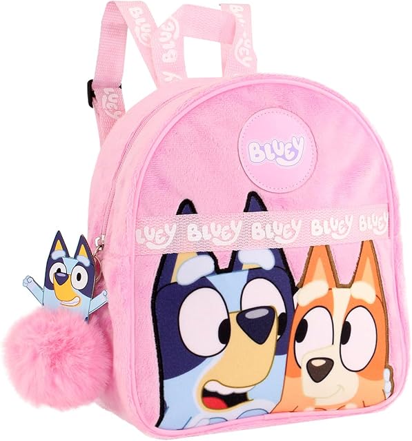 Bluey Backpack for Girls – Fluffy Fur Pink Kids Backpack Travel Purse for Children & Toddler School Bag Rucksack Handbag Ideal for Nursery and Daily Use