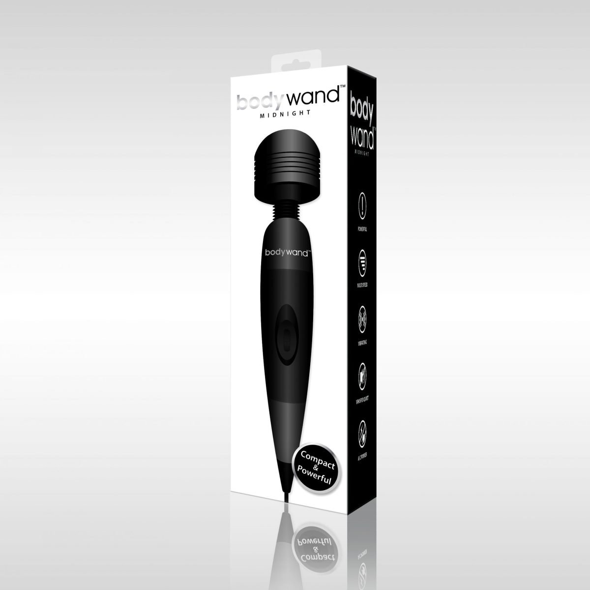 Bodywand Plug In Midnight Massager. From its dark blue color to the rounded, soft touch head, the Bodywand Original massager is engineered with a distinctly feminine feel. A simple ergonomic one finger control dial lets you adjust the A/C power output from a flutter to a freight train, though the wand never sounds louder than an easy hum. The flexible neck reaches all angles and can be fitted with an range of attachments to create a palette of sensual delights. Features: one touch operation. Control dial for infinite speeds. A/C power – just plug it in and start enjoying. Comes with a one year manufacturer warranty. Bodywand personal massager for every part of your body. Bodywand is a registered trademark for X-Gen Products. Colors may vary. 19 video.