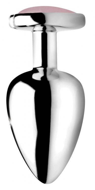 Booty Sparks Gemstones Large Heart Anal Plug Rose Quartz from XR Brands. The romantic Heart Shaped Rose Quartz Gem found on the base of this butt plug opens your romantic energy so you can more easily love yourself or your lover! The smooth and weighty texture provides a deeply satisfying mass of hardness for your butt to squeeze on, perfect for use on your own or as a warmup toy for further anal fun with a lover. Constructed with a body safe aluminum alloy that is easy to clean and compatible with most lubes so you can play with your favorite slippery stuff. Measurements: overall length 3.3 inches, insertable length 2.7 inches, diameter at widest point 1.3 inches. Materials: Aluminum alloy, Rose Quartz. Color: Pink, Silver. Key features: genuine Heart Shaped Rose Quartz Gem. Purify and open your heart; the alluring pink Rose Quartz promotes romance and encourages self love for more fulfilling personal time. Comfortably weighted: add a downward pull to your hole for additional stimulation and pleasure thanks to the weighty nature of these metallic butt plugs. Nickel Free Aluminum Alloy. The aluminum alloy material provides a deliciously hard and smooth mass for your ass to squeeze. Compatible with most lubes. Great for temperature play. Warm or chill this gemstone butt plug in a bowl of water to add another layer of sensation while you play. Perfect for veteran butt plug users looking for a new way to play.