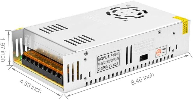 BTF-LIGHTING AC100-240V to DC5V60A Max300W Switching Power Supply Device Transformer Adapter Converter for LED Strip/String/LED Matrix,CCTV Camera,Security System,Radio,Cats