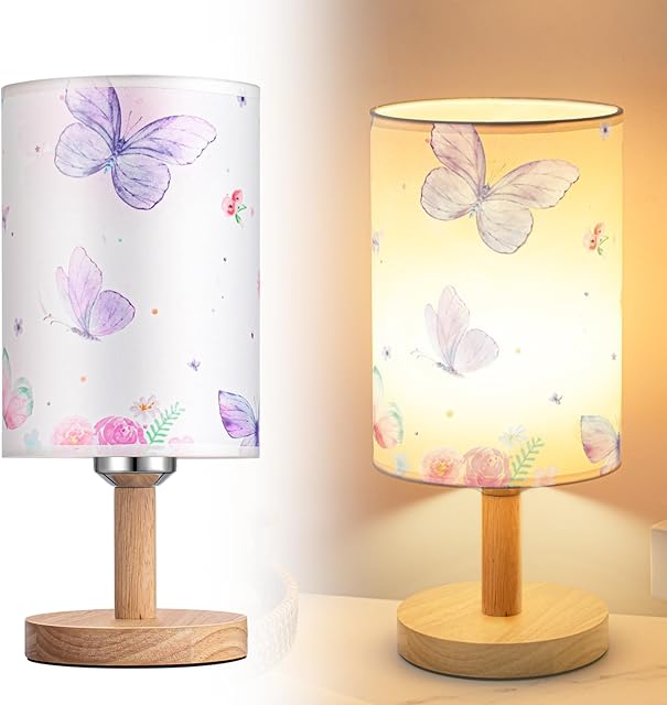 Butterfly Lamp Purple Desk for Kids Lamp Fabric Nightstand Table Lamps for Girl Kids Reading Bedroom Living Room Home Office