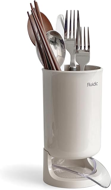 carrotez Utensil Drying Holder for Kitchen Counter, Self Draining, Small Utensil Cutlery Flatware Silverware Holder Drainer Cup, Beige, 1 ea