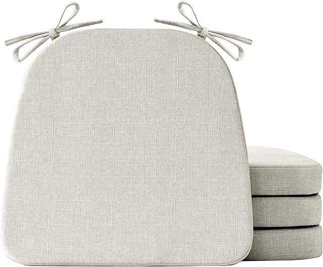 Chair Cushions for Dining Chairs Set of 4, Non Slip Kitchen Chair Pads, 17″ x 16″ x 2″, Indoor Dining Chair Cushions with Ties, D-Shaped Seat Cushions for Kitchen Chairs, Beige
