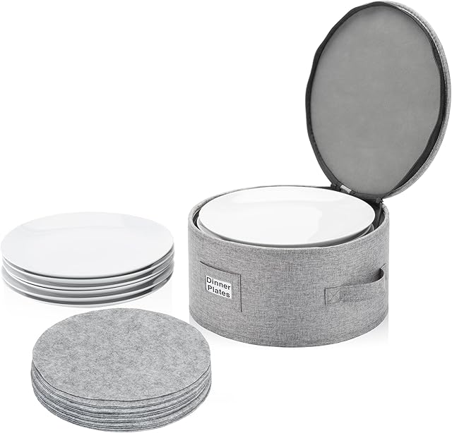 China Storage Container for Dinner Plate – Fit plates up to 11.5″ W – Includes 12 Thick Felt Dividers. Hard Shell and Stackable with Padded Interior