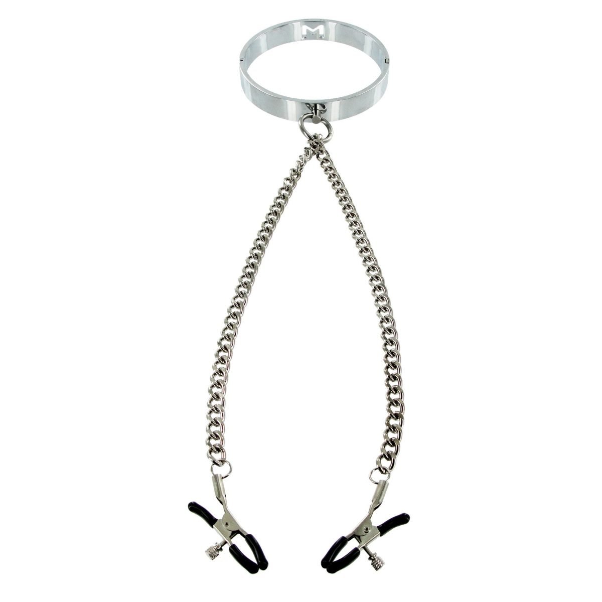 Chrome Slave Collar with Nipple Clamps – SmallMedium