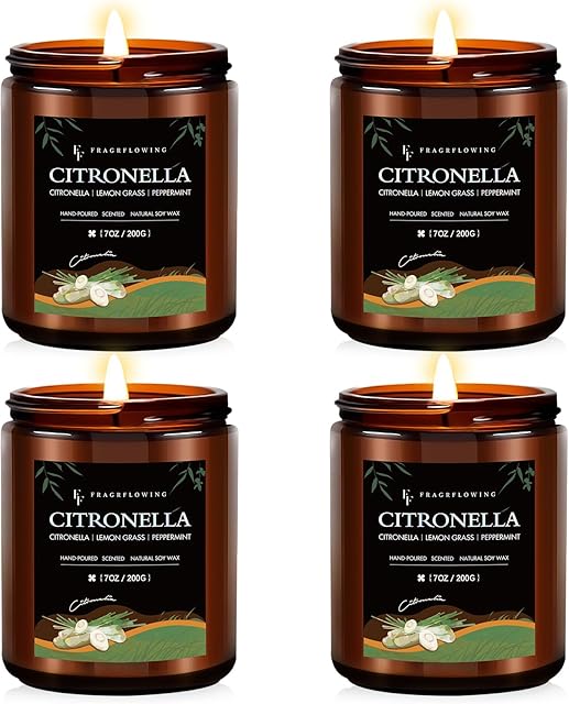 Citronella Candles Set, Indoor Outdoor Lemongrass Scented Candles,Natural Soy Wax Jar Candle, 200-Hour Burn Time, 28 oz (4 Pack)