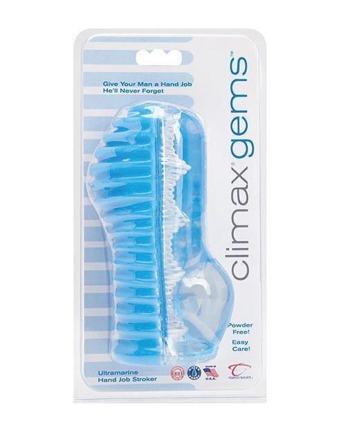 Reach your climax with the Climax Gems Ultramarine Hand Job Stroker from Topco. The TPR hand job stroker is a sensual addition to foreplay with a ribbed, texture tunnel and narrow, textured exterior. It is made of translucent TPR with an open ended design. Waterproof, phthalate free, and made in the USA. 3.5″ x 6″ x 2.5″.