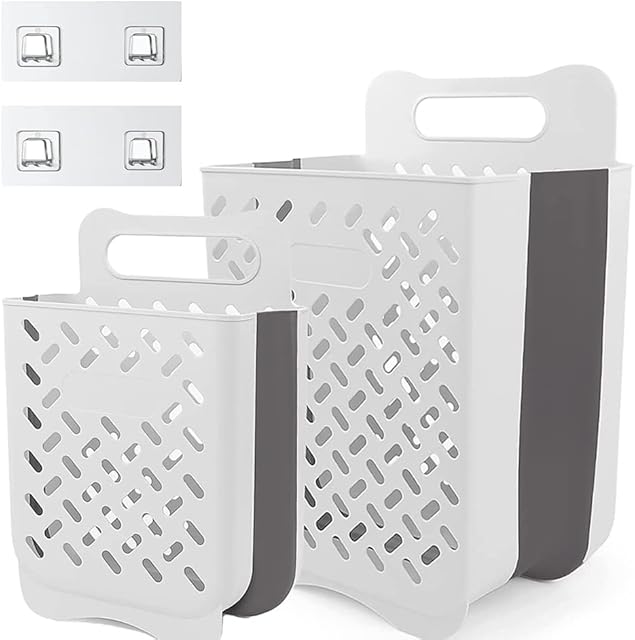 Collapsible Laundry Basket- Large Laundry Basket Hamper with 2 Handles- Space Saving Foldable Storage Container/Organizer (2pcs)