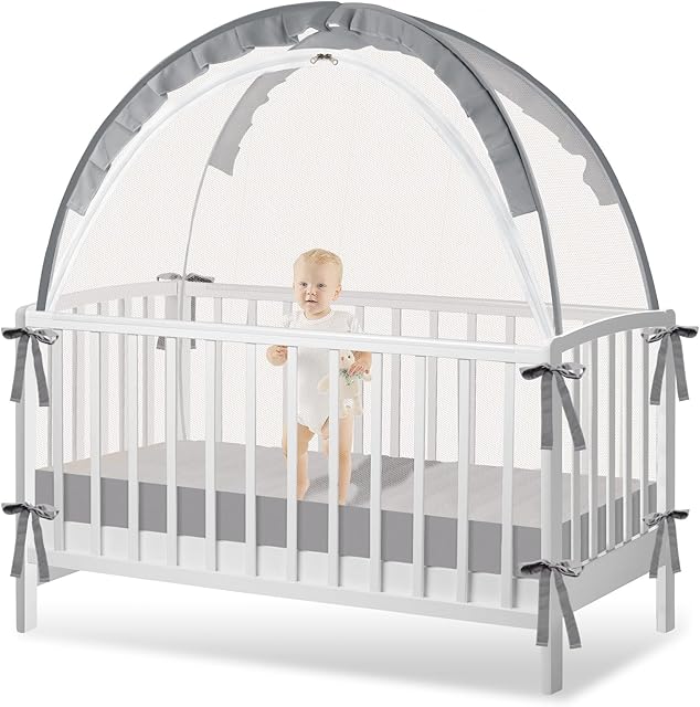 Crib Tent to Keep Baby from Climbing Out – Crib Net to Keep Baby in – Pop Up Breathable Cribs Cover – Canopy with Upgrade Strong Mesh and Durable Zipper (Grey, Lager)