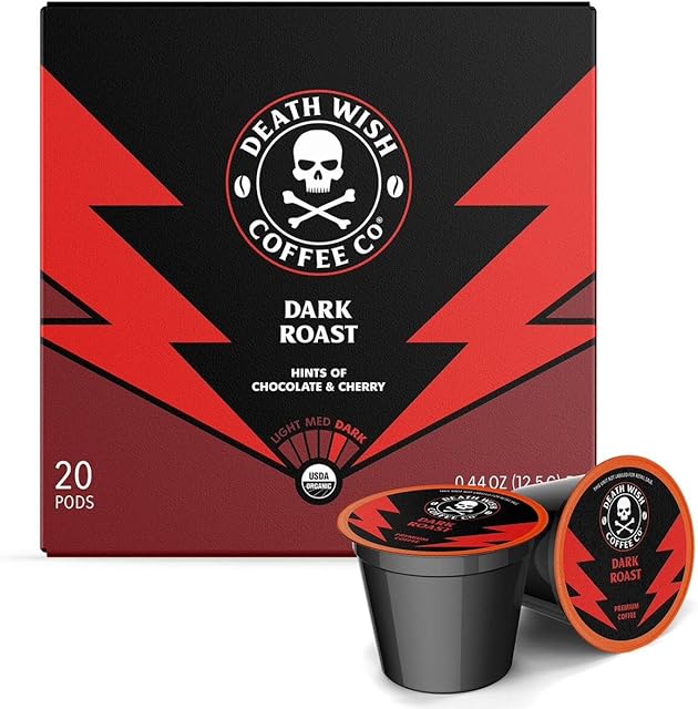Death Wish Coffee, Single Serve Pods – Dark Roast Coffee Pods – Made with USDA Certified Organic, Fair Trade, Arabica and Robusta Beans (20 Count)