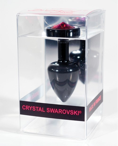 Diogol Anni Round Black T1 – 25mm Pink made using Aluminum and features a Swarovski Element on the end of the butt plug. Black plug, pink crystal. Made in Paris, France. 57mm in length by 25mm width, 30mm insertion length e or approximately 2.24 inches by .98 inch insertion length 1.18 inches.