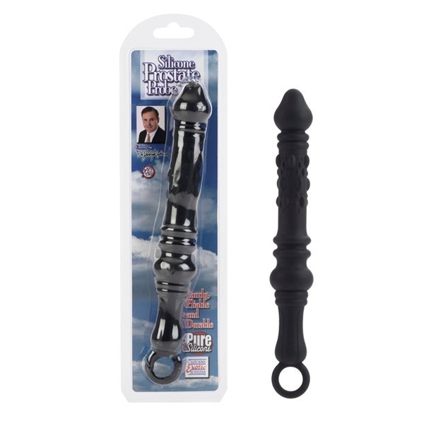 Dr. Joel Kaplan Silicone Prostate Probe is a textured probe with an easy pull ring. Pliable, flexible, and multi-functional. Safe and pure for body and pleasure. Made using phthalate free, non-toxic materials Silicone. Prostate probe measures 7.75 inches long by 1.25 inches wide. Bulk weight: 3.1 ounces. Always clean before and after use. A water based lubricant is recommended. Category: New Items, For Men, Anal Toys, Probes. Dr. Joel Kaplan Silicone Prostate Probe is a registered trademark for California Exotic Novelties.