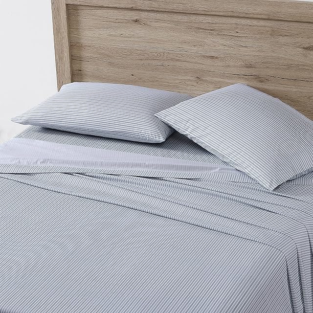 Eddie Bauer – Twin XL Sheet Set, Cotton Percale Bed Sheets, Crisp & Cool, Ideal Dorm Essentials (Ticking Stripe Light Blue, Twin XL)