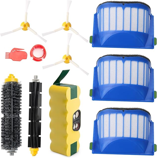 efluky 3500mAh Ni-MH Replacement Roomba Battery + Replacement Accessory Part Kit for iRobot Roomba 600 Series 600 610 614 620 625 630 635 640 645 650 655 660 665 670 680 690 – a Set of 11