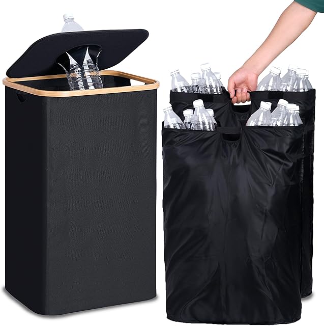 efluky Recycling Bin for Kitchen 26 Gallon, 100L Recycle Bin with 2 Removeable and Reusable Inner Bag, Large Recycling bin with lid for Bottle Can Plastice Stickers (Black)