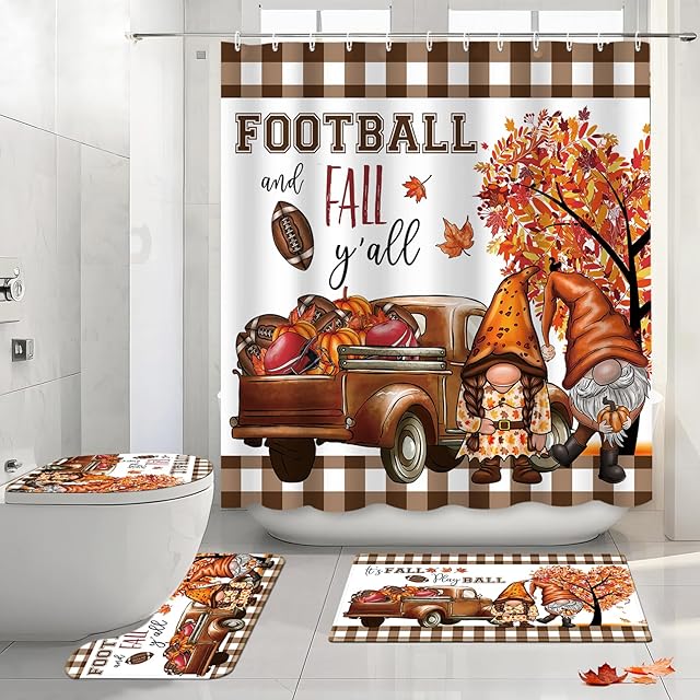 Order Fall Pumpkin Bathroom Sets with Shower Curtain and Rugs Football Gnomes Shower Curtain Sets with Bath Rugs Maple Leaf Gnomes Shower Curtains for Bathroom Decor today for a best price.