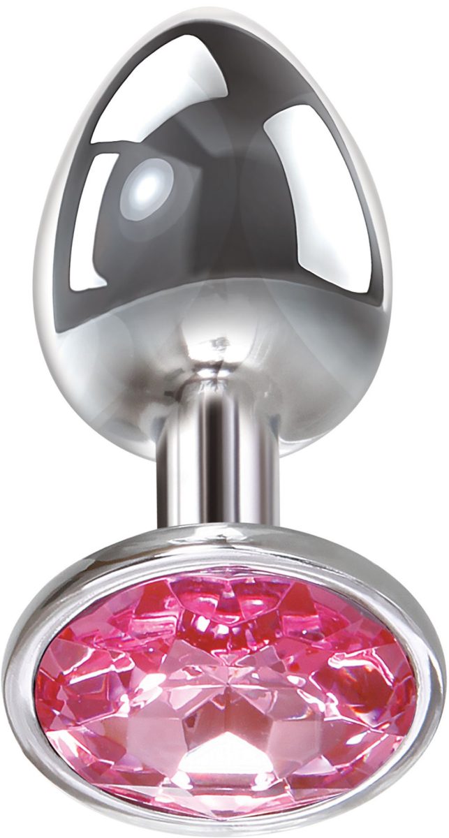 Experience the intense, targeted stimulation that you can only get with the weight & feel of polished aluminum. This medium-sized plug is perfect for begginners or advanced players who crave a body-safe toy that can alse be warmed or chilled for exhilarating temperature play. The flared safety base provides effortless navigation. A sparkling pink jewel sets a playful mood! Its nonporous surface sanitizes to perfection with Adam & Eve toy cleaner and a warm water rinse. A black velvet drawstring bag is included for discreet travel or storage.