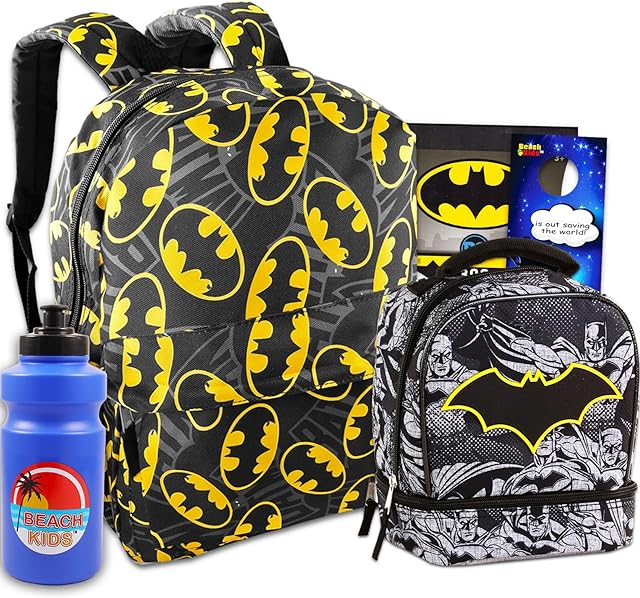 Fast Forward Batman Backpack with Lunch Box Set – Batman Backpack for Boys 8-12 Bundle with Lunch Bag, Water Bottle, Stickers, More