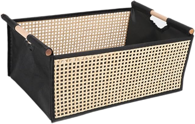 Fenteer Handwoven Storage Basket Desktop Organizer Snack Basket Multiuse with Wooden Handles for Farmhouse Closet Laundry Office Toys, 38.5cmx25.5cmx15.5cm