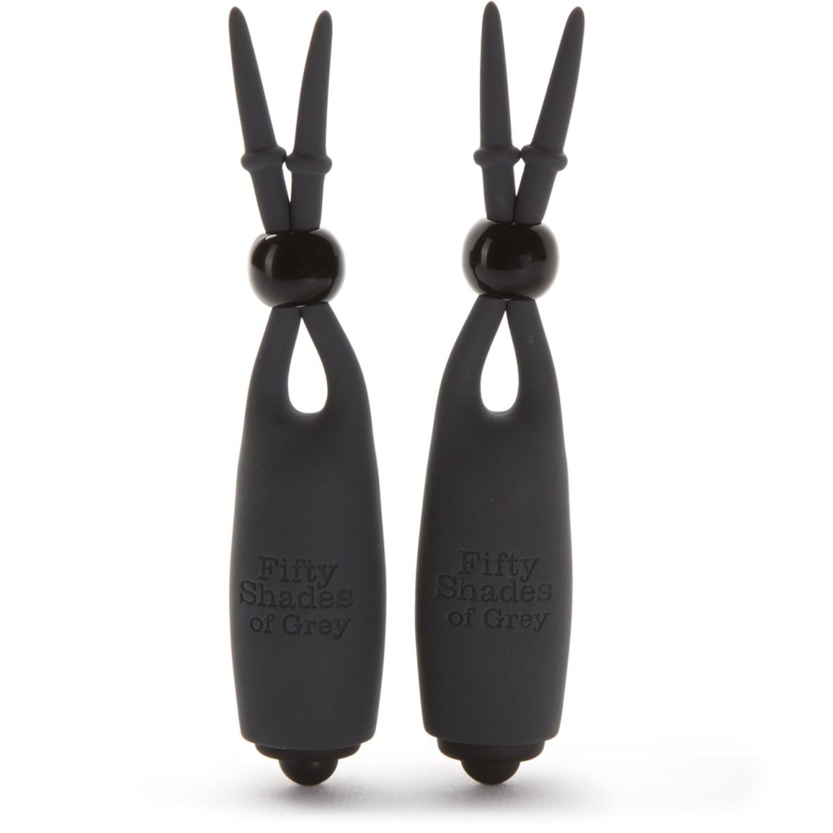 Fifty Shades of Grey Weekend Collection Sweet Torture Vibrating Nipple Stimulators Gray. Gentle sensation becomes body trembling titillation with Sweet Torture, a set of bullet powered vibrating nipple teasers. Velvet soft silicone features a slide to fit toggle that holds without pinching, so you feel nothing but stunning stimulation. Features of Fifty Shades of Grey silicone vibrating nipple teasers. Channel sweet sensations to your nipples. Slide to fit toggle fits snugly without pinching. Holds in place independently for hands free stimulation. Single speed bullet can be removed. 100% waterproof vibrations.