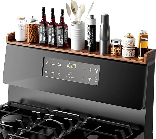 Fun Memories 30″ Pine Wood Wall Mounted Stove Top Shelf Dark Brown