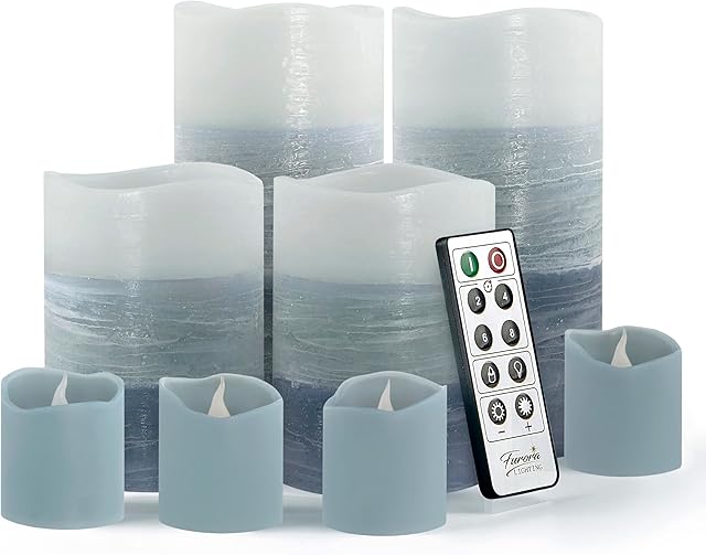 FURORA LIGHTING Blue Ombre Real Wax Flameless Candles with Remote and Timer, 4 Pillars and 4 Votives Pack of 8, LED Flickering Candles for Home Décor, Battery Operated