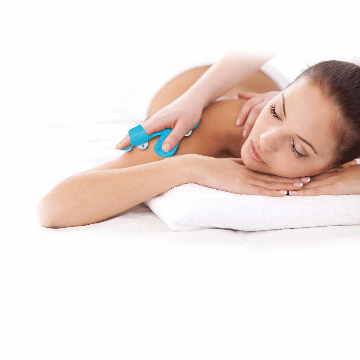 Fuzu Glove features nine 380 degree rolling balls that contour to the body’s curves for a generous, tension-relieving massage. Separate thumb and pinky pads apply additional pressure while rubber nubs inside the glove massage the hand. Adjustable straps ensure one size fits all.