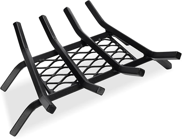 G GOOD GAIN Fireplace Grate with Ember Retainer, 15.5″ Heavy Duty Cast Iron Indoor, Chimney Hearth Wood Stove Burning Rack Holder,1/2? Bar Fire Place Asseccories for Outdoor, Fire Pits, Camping.