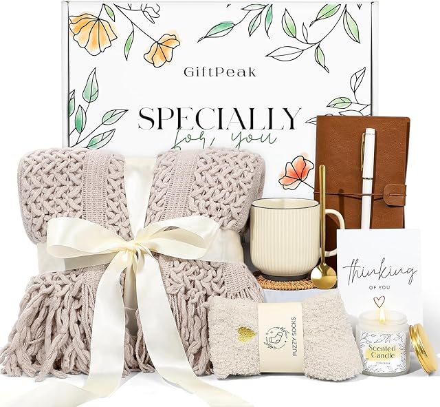 Gifts for Women, Get Well Soon Gifts for Women, Sympathy Care Baskets, Thinking of You Care Package, Self Care Gifts, After Surgery Feel Better Gifts Blanket (Khaki)