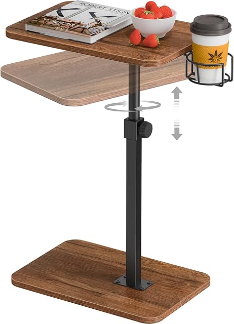Giikin TV Tray Table, 360° Swivel Height Adjustable TV Trays for Eating on Couch,Sofa Armrest Side Table for Small Spaces Sofa Bed Dinner, Rustic Brown